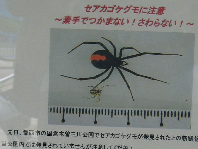 野方三池公園に行くと、毒グモ注意の張り紙がありました。