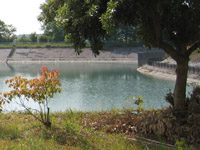 ここは、藤島町にある工業団地の一角にある機織池(はたおりいけ)です。