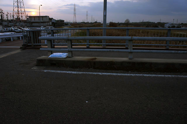 ほんごうはしの脇には「塩化カルシウム(粒状)」の袋が。